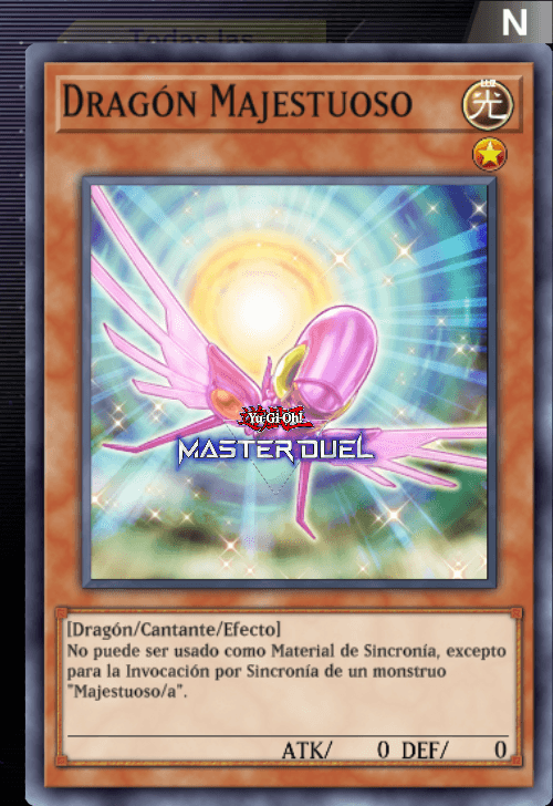 No puede ser usado como Material de Sincronía, excepto para la Invocación por Sincronía de un monstruo "Majestuoso/a".