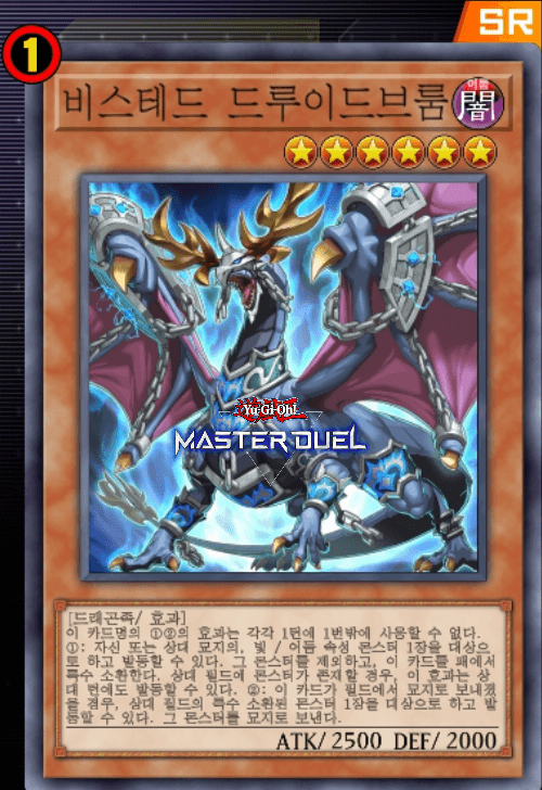 이 카드명의 ①②의 효과는 각각 1턴에 1번밖에 사용할 수 없다. ①: 자신 또는 상대 묘지의, 빛 / 어둠 속성 몬스터 1장을 대상으로 하고 발동할 수 있다. 그 몬스터를 제외하고, 이 카드를 패에서 특수 소환한다. 상대 필드에 몬스터가 존재할 경우, 이 효과는 상대 턴에도 발동할 수 있다. ②: 이 카드가 필드에서 묘지로 보내졌을 경우, 상대 필드의 특수 소환된 몬스터 1장을 대상으로 하고 발동할 수 있다. 그 몬스터를 묘지로 보낸다.