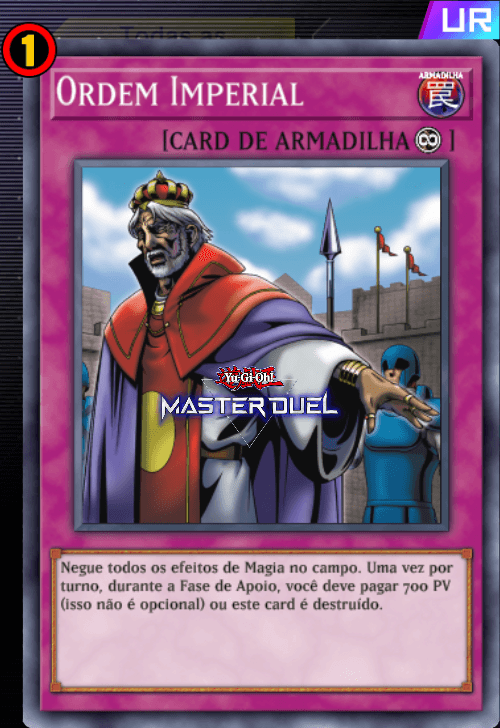 Negue todos os efeitos de Magia no campo. Uma vez por turno, durante a Fase de Apoio, você deve pagar 700 PV (isso não é opcional) ou este card é destruído.